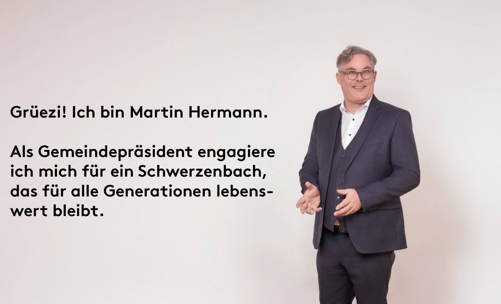 Diese Website gibt Ihnen Einblick in meine Arbeit und Haltung. Sie erfahren, was mich bewegt, wie ich mich für Schwerzenbach einsetze – und wo ich anpacke, damit unsere Gemeinde Schritt hält, ohne sich selbst zu verlieren.